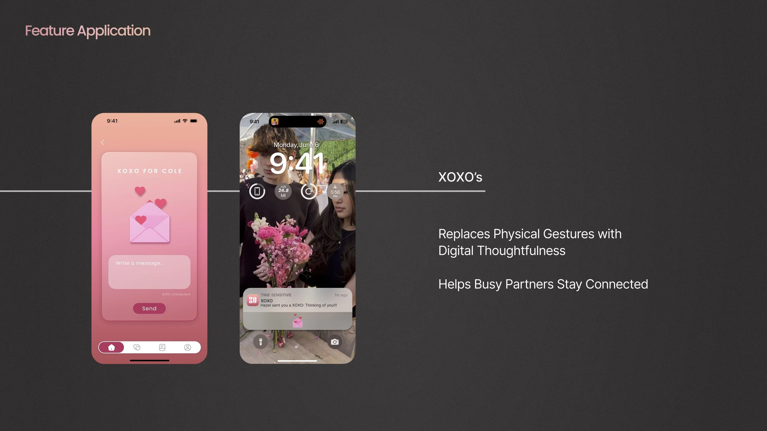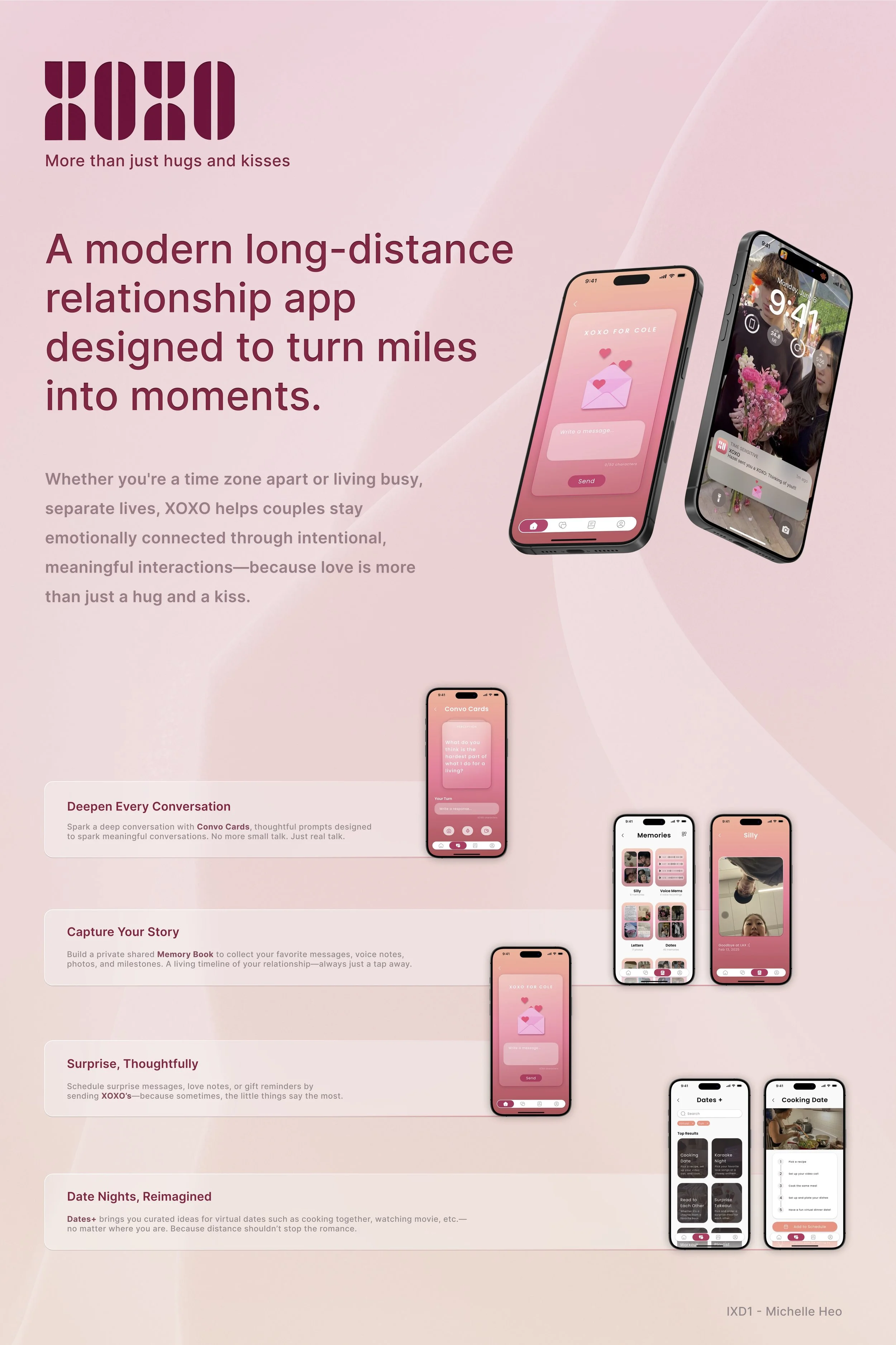 XOXO is a mobile app designed to help long-distance couples stay emotionally connected by turning everyday communication into meaningful shared experiences, no matter the distance.