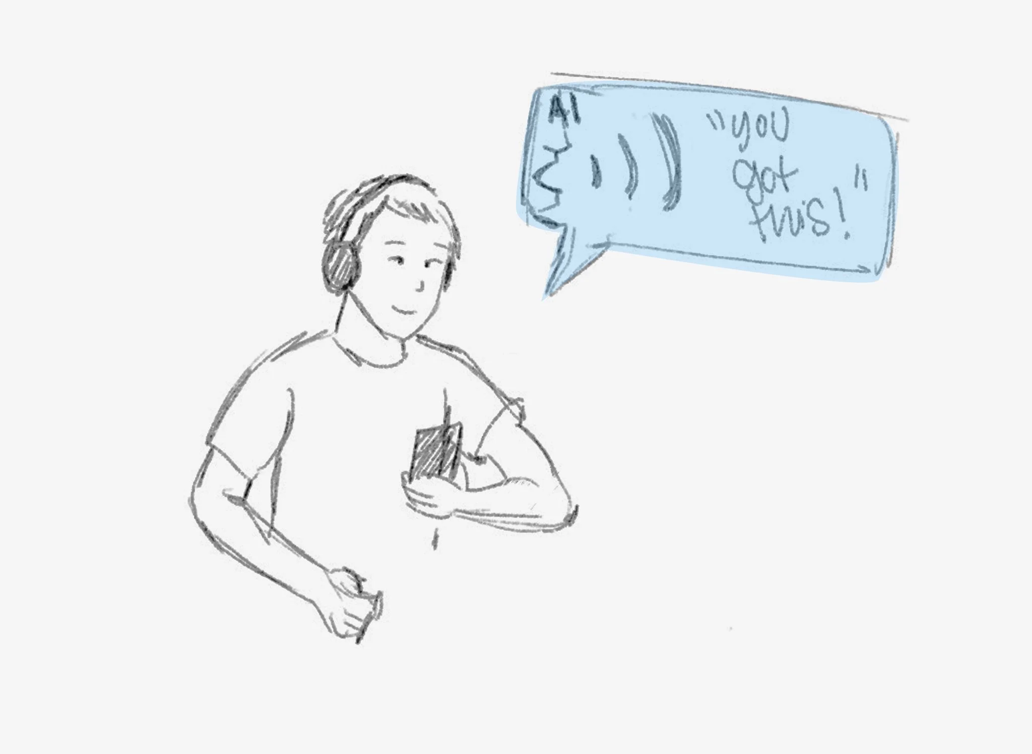 Seeing Alex's low mood and hesitation, the AI offers personalized encouragement and steps up to fill the role of the missing running partner, helping Alex start his run.